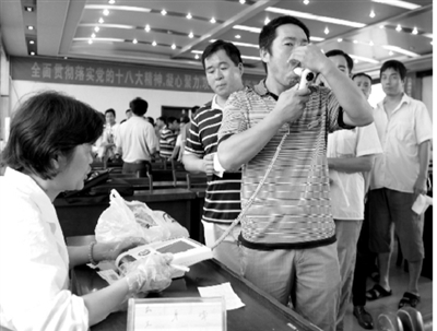 近年來,安徽淮北礦業(yè)集團童亭礦高度重視職業(yè)病危害防治工作,每年都堅持為2000多名一線職工進行職業(yè)健康體檢。圖為一線職工在進行肺活量檢測。王 莉 攝