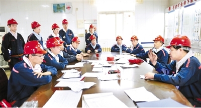 安徽淮北礦業(yè)集團(tuán)朔石礦業(yè)積極推進(jìn)“一礦兩井”升級(jí)版安全質(zhì)量標(biāo)準(zhǔn)化觀摩交流活動(dòng)。圖為西部井采掘生產(chǎn)系統(tǒng)人員近日在東部井下井后交流觀摩感受。喬時(shí)慶 攝