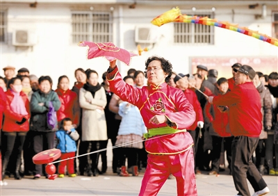 2月8日,安徽淮北礦業(yè)集團朱仙莊礦舉辦大型民間文藝表演,歡慶鑼鼓、腰鼓、抖空竹表演等節(jié)目,給礦區(qū)職工、家屬送上了豐盛的“精神大餐”。張萬學(xué) 攝