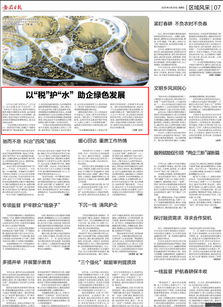 以“稅”護(hù)“水” 助企綠色發(fā)展