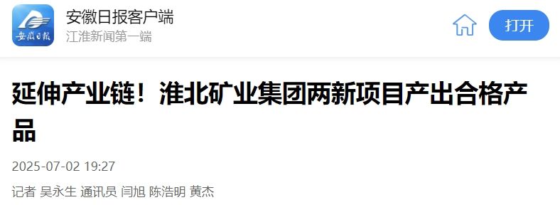 記者7月2日從淮北礦業(yè)集團(tuán)獲悉,該集團(tuán)旗下兩家企業(yè)新建項(xiàng)目近日分別產(chǎn)出合格產(chǎn)品,進(jìn)一步延伸了煤化工產(chǎn)業(yè)鏈。