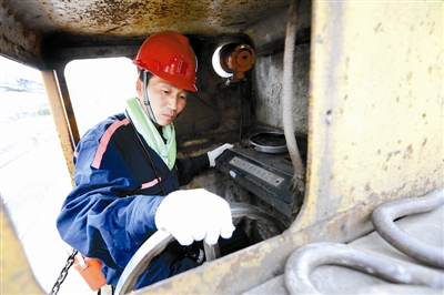 交接班的時候,上一班司機將車輛運行情況交待清楚,薛傳斌看了一遍,還是不放心,發(fā)車前又對車輛檢查一遍。