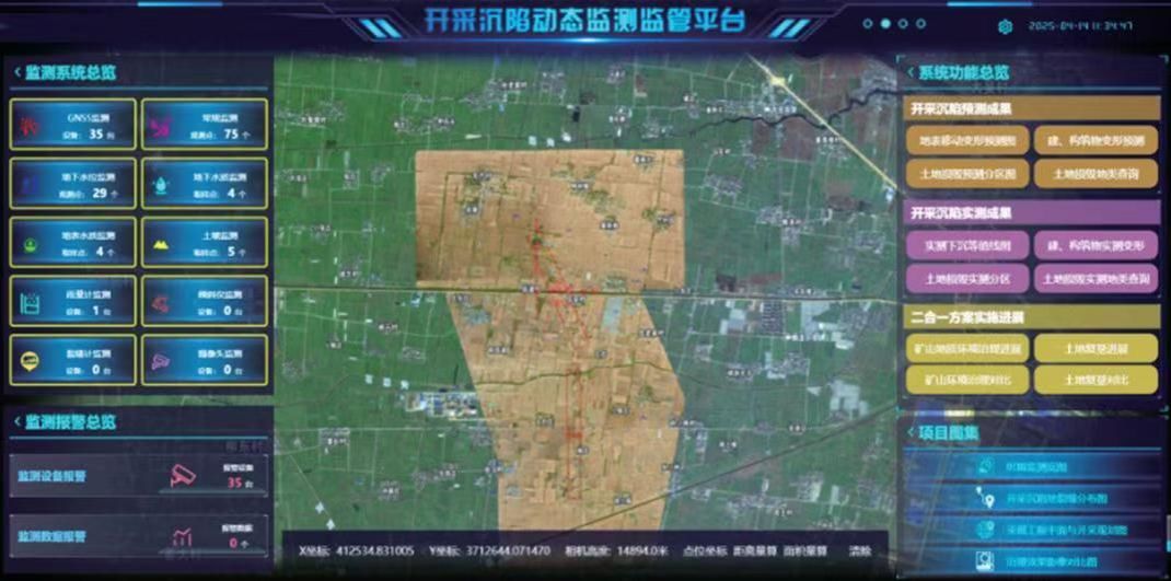 衛(wèi)星監(jiān)測(cè)守良田。信湖煤礦依托安徽省自然資源廳試點(diǎn)項(xiàng)目,引入GNSS衛(wèi)星定位系統(tǒng)和無(wú)人機(jī)航拍技術(shù),對(duì)沉陷區(qū)地面變形、沉降、位移等數(shù)據(jù)進(jìn)行實(shí)時(shí)采集和監(jiān)控,監(jiān)測(cè)精度達(dá)毫米級(jí)。通過(guò)構(gòu)建“開(kāi)采沉陷動(dòng)態(tài)監(jiān)測(cè)監(jiān)管平臺(tái)”,工作人員可實(shí)時(shí)查看地表移動(dòng)變形預(yù)測(cè)、建構(gòu)筑物變形監(jiān)測(cè)、地下水位變化等數(shù)據(jù),確保開(kāi)采擾動(dòng)值控制在耕作允許范圍內(nèi)。
