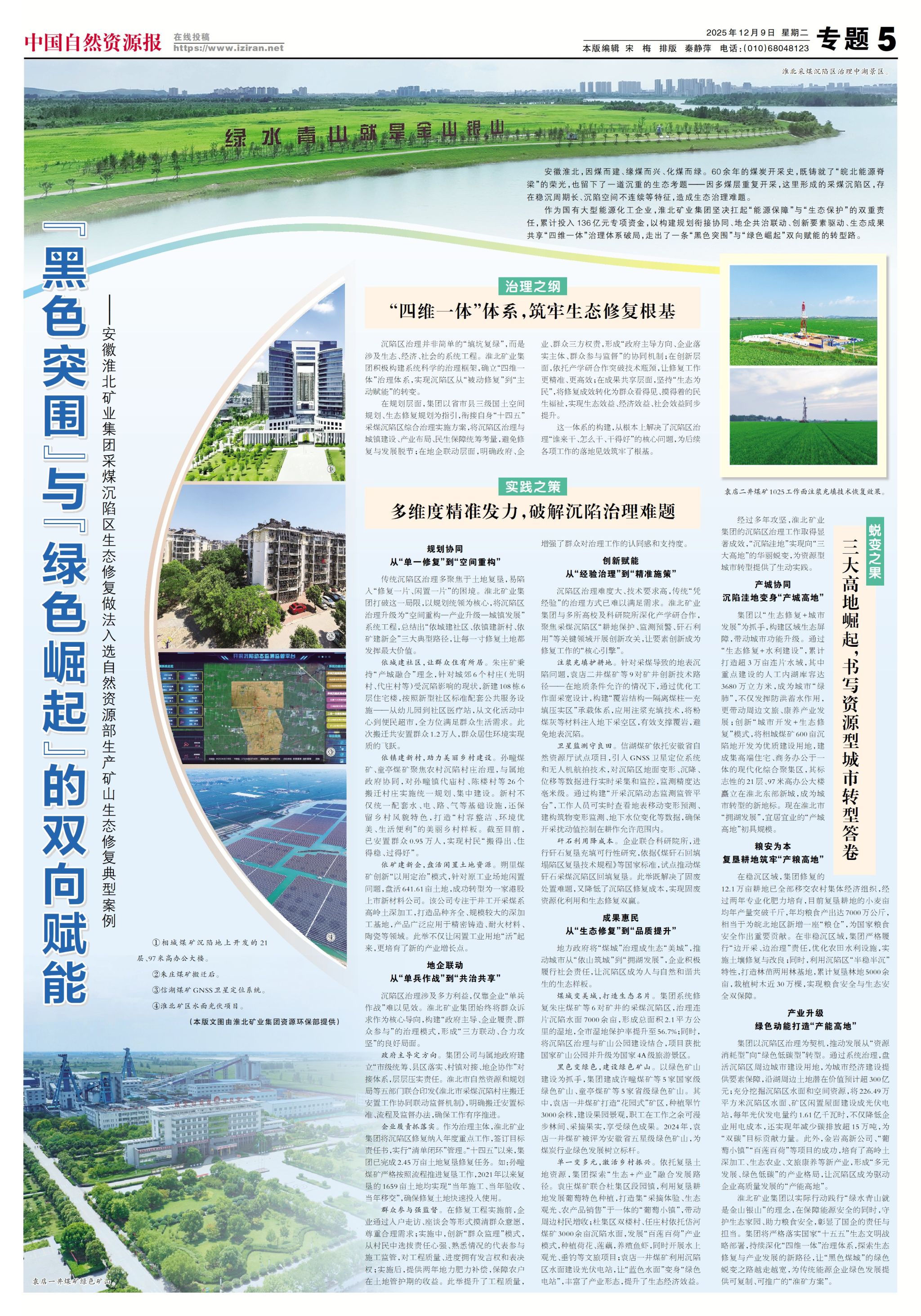 經(jīng)過(guò)多年攻堅(jiān),淮北礦業(yè)集團(tuán)的沉陷區(qū)治理工作取得顯著成效,“沉陷洼地”實(shí)現(xiàn)向“三大高地”的華麗蛻變,為資源型城市轉(zhuǎn)型提供了生動(dòng)實(shí)踐。
