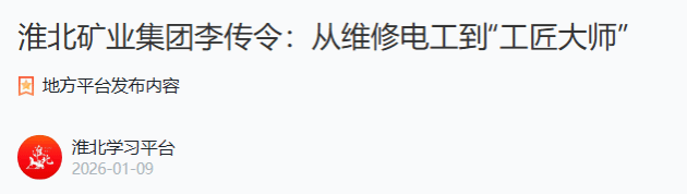 近日,從青東礦傳來喜訊,該礦保運(yùn)一區(qū)電工李傳令憑借其精湛技藝、卓越創(chuàng)新與突出貢獻(xiàn),成功獲評(píng)淮北礦業(yè)集團(tuán)“工匠大師”稱號(hào)。