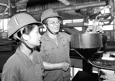 日前,安徽淮北礦業(yè)集團淮北選煤廠通過舉辦名師高徒大賽等活動,提升員工素質(zhì)。圖為選煤車間師徒兩人在調(diào)試浮選設備用油比例。韓曉兵 攝