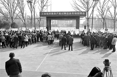 3月4日,由合肥市總工會、淮北市總工會和淮北礦業(yè)集團(tuán)工會聯(lián)合舉辦的“工會組織服務(wù)產(chǎn)能過剩企業(yè)專場招聘會”在岱河礦業(yè)舉行。