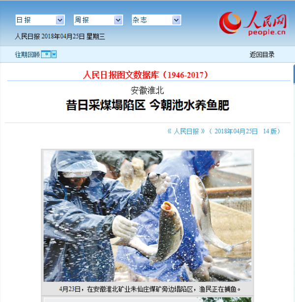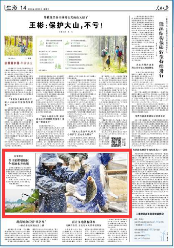 《人民日?qǐng)?bào)》:朱仙莊礦采煤塌陷區(qū)清水養(yǎng)魚(yú)肥