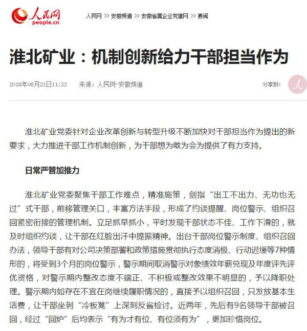 淮北礦業(yè):機(jī)制創(chuàng)新給力干部擔(dān)當(dāng)作為