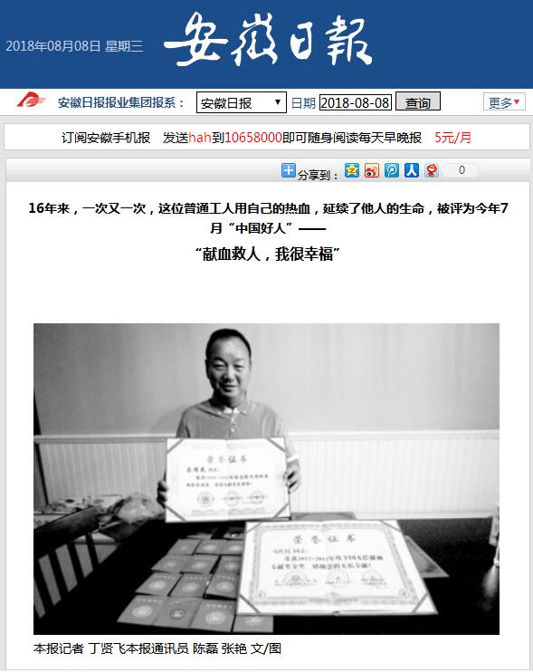 16年來,一次又一次,這位普通工人用自己的熱血,延續(xù)了他人的生命,被評(píng)為今年7月“中國好人”——