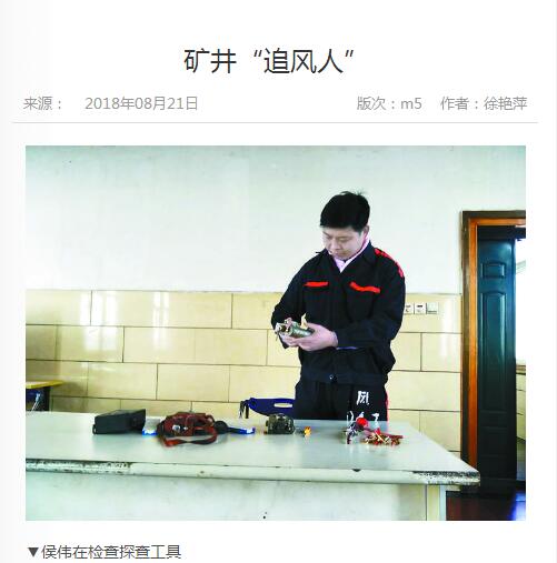 由于工作努力出色,不到1年,侯偉擔任了蘆嶺礦通風區(qū)測氣隊隊長,完成了從“門外漢”到“追風人”的華麗轉(zhuǎn)身。憑借著吃苦耐勞、以身作則的精神,如今,他已經(jīng)成為了煤礦通風戰(zhàn)線的尖兵。
