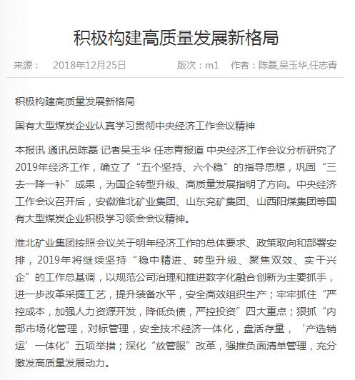 來源:《中國煤炭報》 2018年12月25日 1版