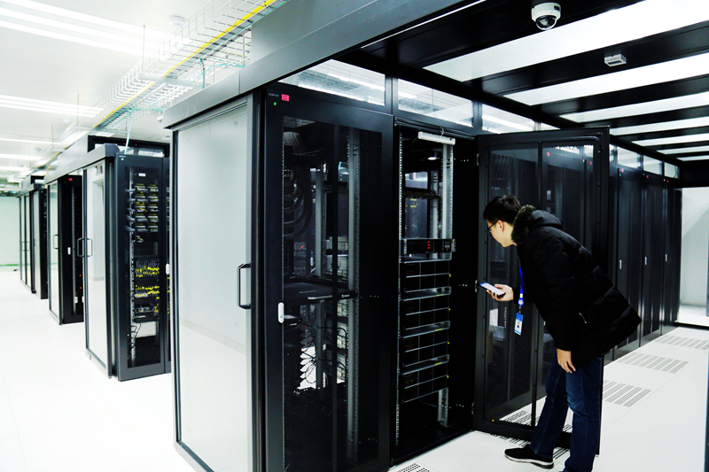 運維人員在用手機掃碼對云計算中心設(shè)備進行巡檢