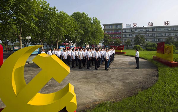 為紀(jì)念中國共產(chǎn)黨成立99周年,回顧黨的光輝歷史,繼承黨的優(yōu)良傳統(tǒng),進一步激發(fā)廣大黨員的愛國主義情感,7月1日,朱仙莊礦在開放式學(xué)校組織黨員干部開展了“新黨員宣誓、老黨員重溫誓詞”活動。100多名新老黨員在莊嚴(yán)的黨旗下,同舉右手,莊嚴(yán)宣誓,充分發(fā)揮先鋒模范作用,立足本職崗位、奮發(fā)有為,為全面打造“六大標(biāo)志”全新朱仙莊而努力奮斗。(張萬學(xué))