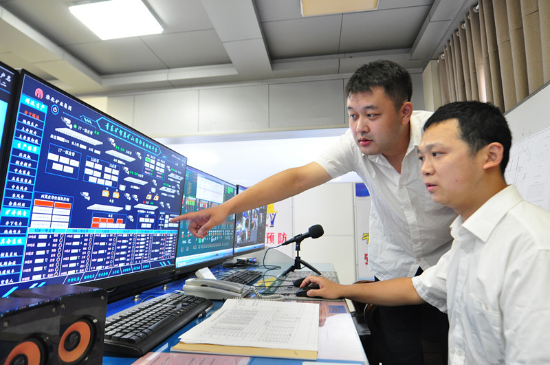 圖為集控司機利用智慧礦山綜合自動化平臺操控井下設(shè)備。