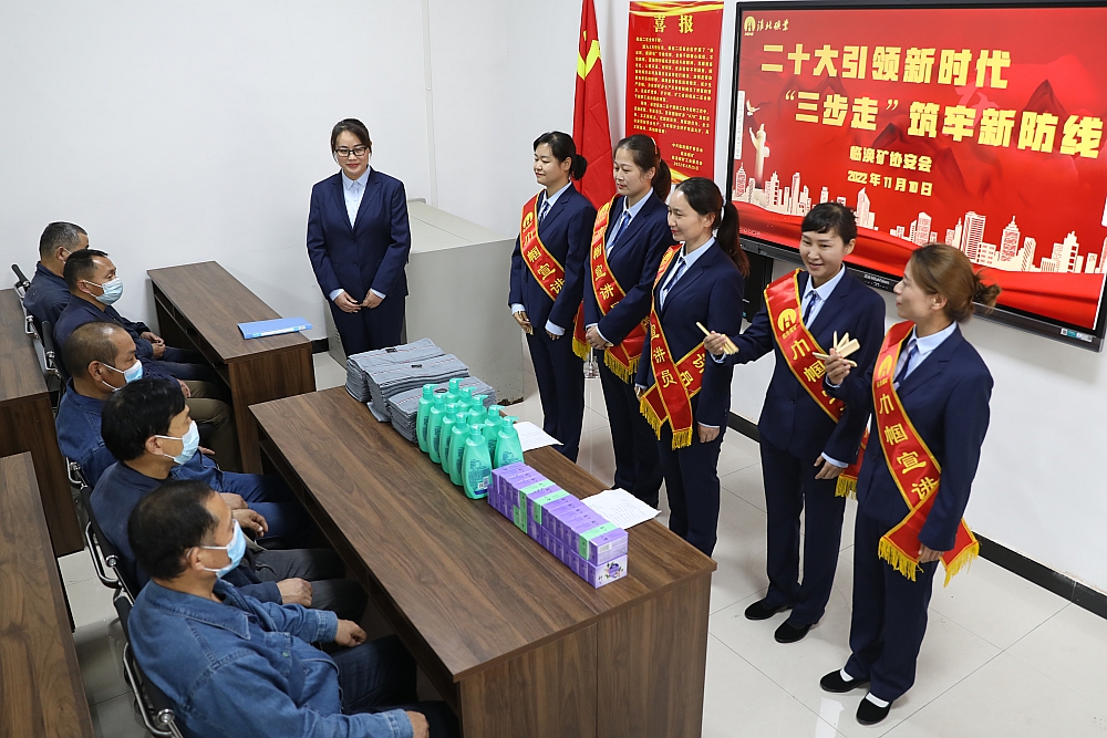 “兩個確立是關(guān)鍵,三個務(wù)必心中念;偉大變革意義大,五個堅持志更堅……”連日來,一首以宣傳黨的二十大精神為主題的快板書在臨渙礦干部職工中廣為傳播。黨的二十大勝利召開后,臨渙礦迅速行動起來,發(fā)動各級黨員干部分成6個組,開展專題宣講,把黨的二十大精神第一時間送到基層科區(qū)、班組。