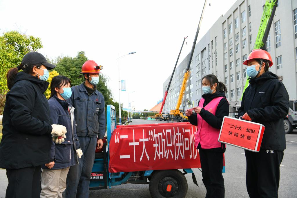 12月2日,宣講人員(右二)深入生產(chǎn)一線向職工宣講黨的二十大精神。