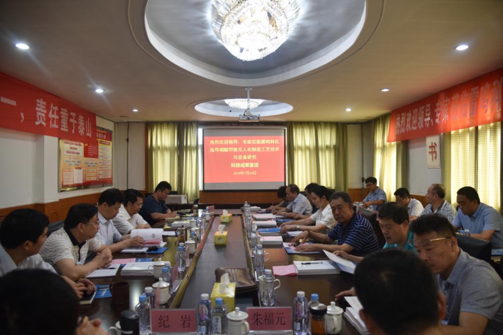 2019年7月24日,工業(yè)和信息化部組織專家在雷鳴科化公司召開水膠炸藥生產(chǎn)線科技成果鑒定會,對雷鳴科化公司與石家莊成功機電有限公司合作研制的“水膠炸藥智能化生產(chǎn)技術(shù)及設(shè)備”、與北京北礦億博科技有限責(zé)任公司合作研制的“硝酸甲胺無人化制造工藝技術(shù)與設(shè)備”兩項科技成果進行鑒定。“我認為這兩項科技成果已達到國際先進水平?!眳未壕w專家在鑒定會上如是說。