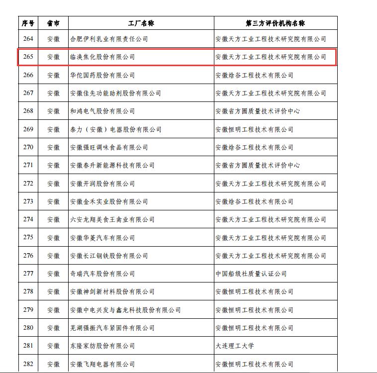 10月29日,工業(yè)和信息化部辦公廳公布第五批綠色制造名單,臨渙焦化公司榜上有名,被評為國家級“綠色工廠”。