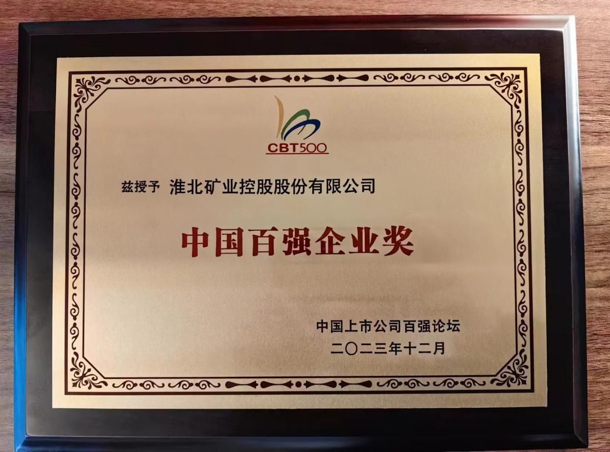 淮北礦業(yè)榮獲中國(guó)百?gòu)?qiáng)企業(yè)獎(jiǎng)榮譽(yù)稱(chēng)號(hào)