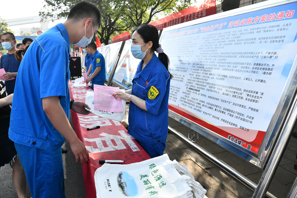 淮北選煤廠牢固樹立“綠水青山就是金山銀山”的理念,通過持續(xù)提升環(huán)境治理水平、舉辦“綠色大講堂”、開展環(huán)保法律法規(guī)進班組宣講等多種方式,營造“綠色淮選,美麗有我”的濃厚氛圍。圖為6月4日,世界環(huán)境日前夕,該廠開展環(huán)保簽名活動,向干部職工發(fā)放環(huán)保手冊、宣傳單,號召大家環(huán)保從我做起。(撰稿:丁洋洋 審核:孟昭香)