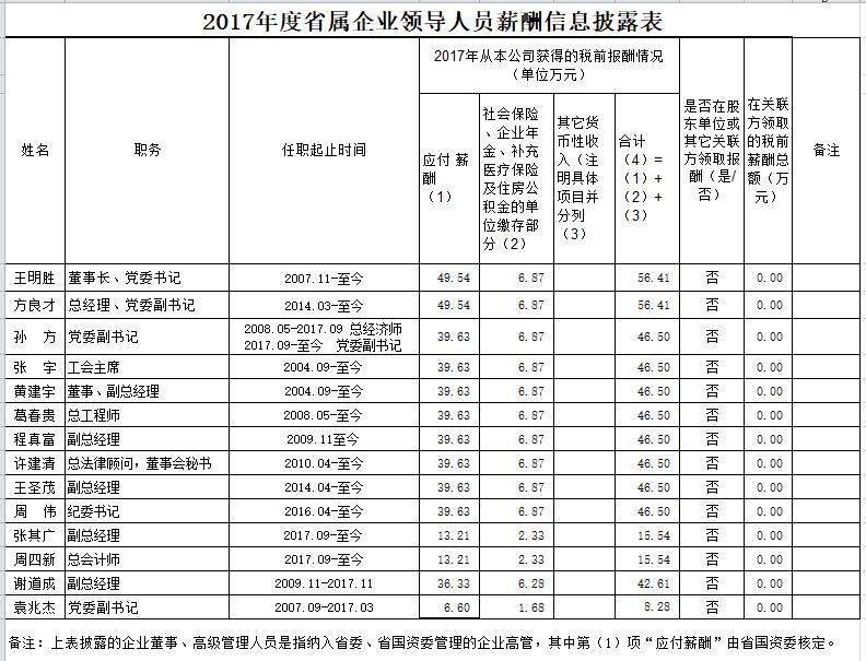 淮北礦業(yè)集團(tuán)2017年度省屬企業(yè)領(lǐng)導(dǎo)人員薪酬信息披露表